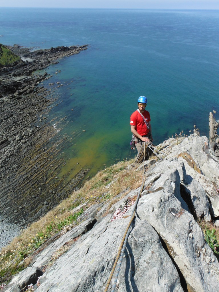 Danny at the top of The marvellous Wreckers Slab in Cornwall