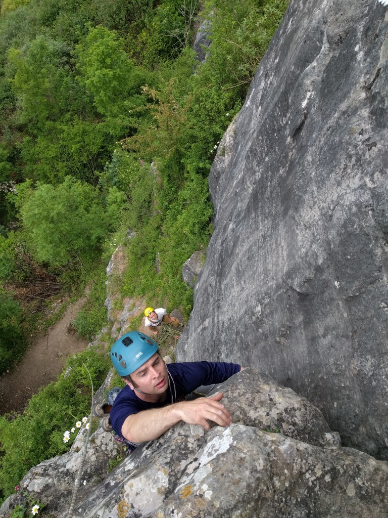 Simon on his first lead. Split, VS – not bad